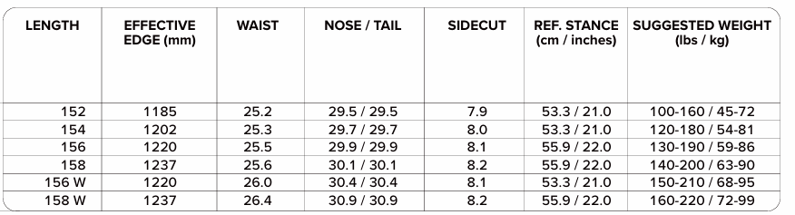 また、「Park / Resort」というボードタイプ表記や、レーダーチャートでもJUMPS(ジャンプ)JEBBING(ジブ)、そしてGROOMERS(グルーマーズ)の数値が高いことから、パークや整備されたバーンでの性能に特化したモデルであることが読み取れます。