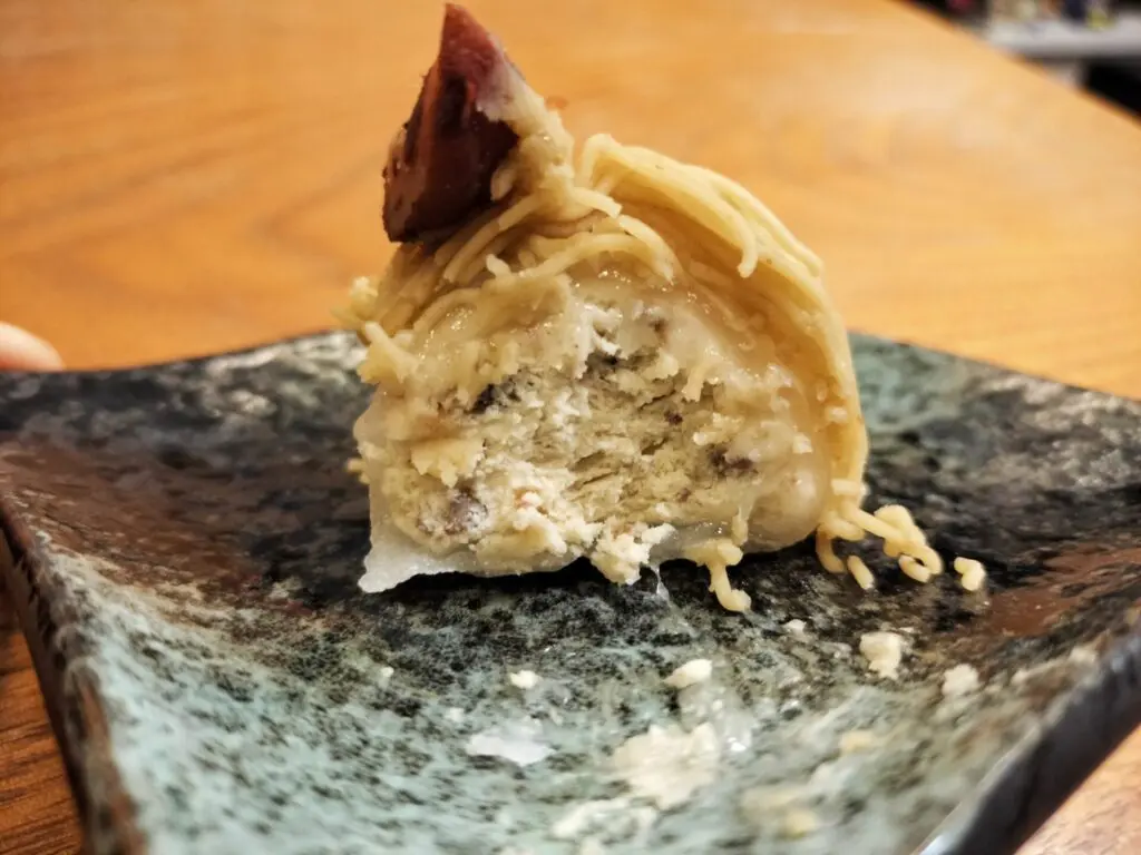 ・栗の濃厚さと北海道産の生クリームが織りなす味わいが口の中に広がる。