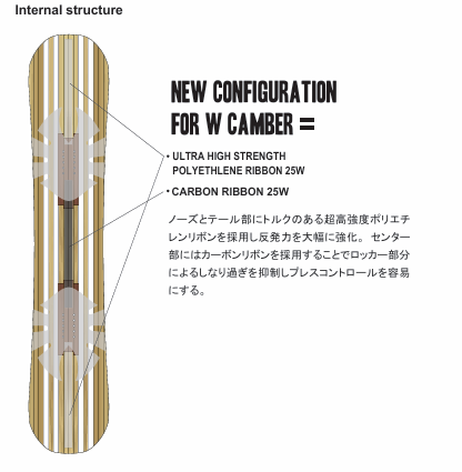 あと、ノーズとテールには「高強度ポリエチレンリボン」が入っていて、これが踏み込んだ時の強い反発力を生み出しているみたい。
