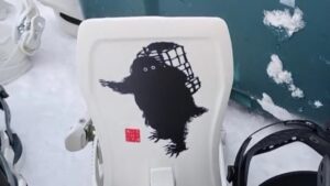 ハイバックに描かれた「雪男」の文字と、どこか愛くるしいキャラクターのイラスト。