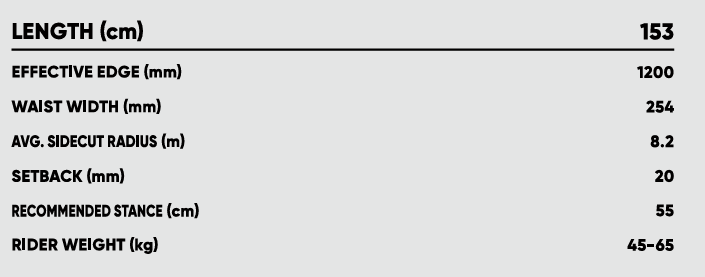 スライド操作も良好なので、地形に入っても取り回しがしやすく、ゲレンデ全体で遊べるボードだと感じました。