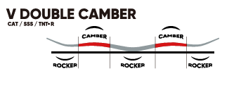 CATは、このVダブルキャンバーのおかげで、安心してグラトリの練習に集中できます。