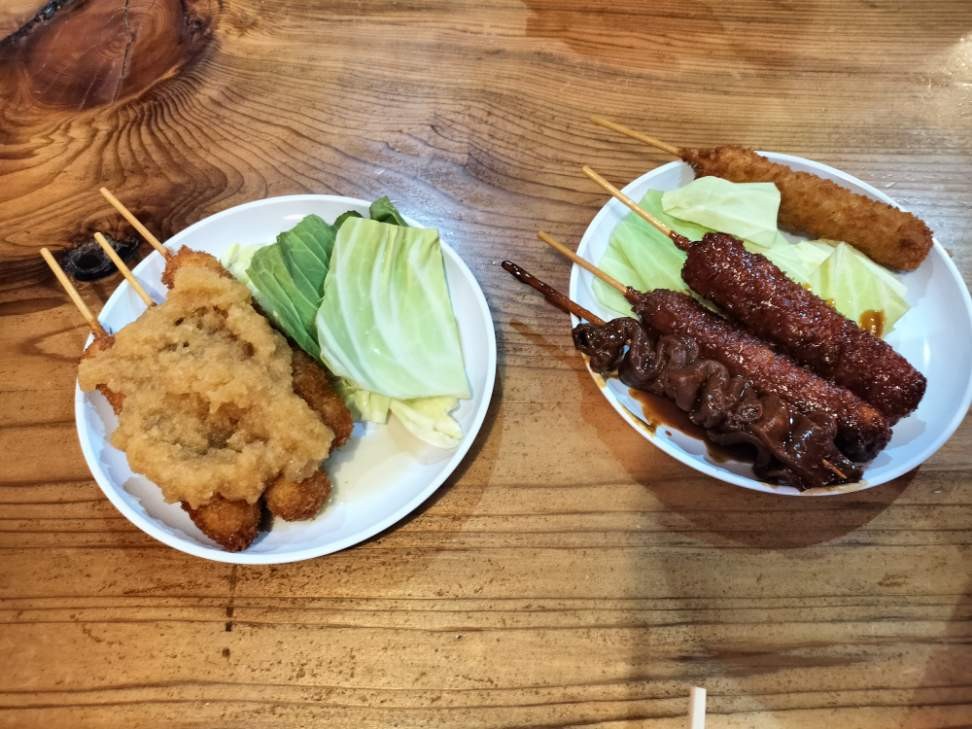 更に「豊まる」さんでも串カツをミソ、ソース、おろしポン酢で堪能。