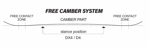 添付画像を見ると、DX4は接雪点付近がフラットに近い形状になっているハイブリッド構造であることが分かります。