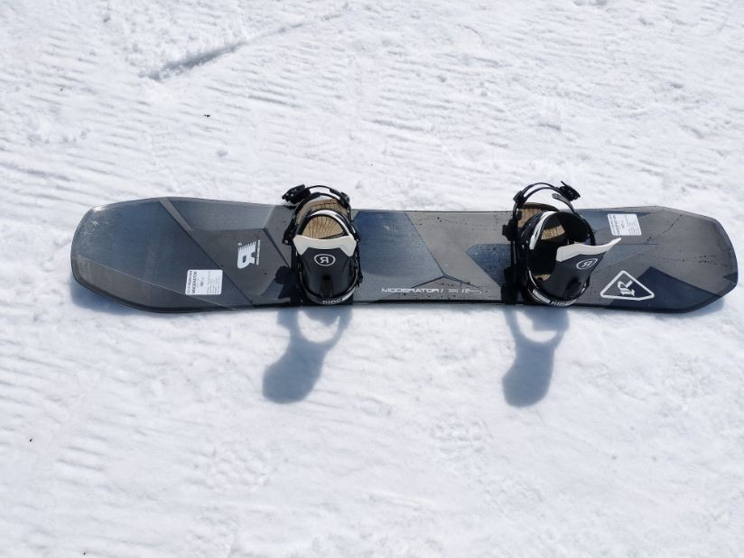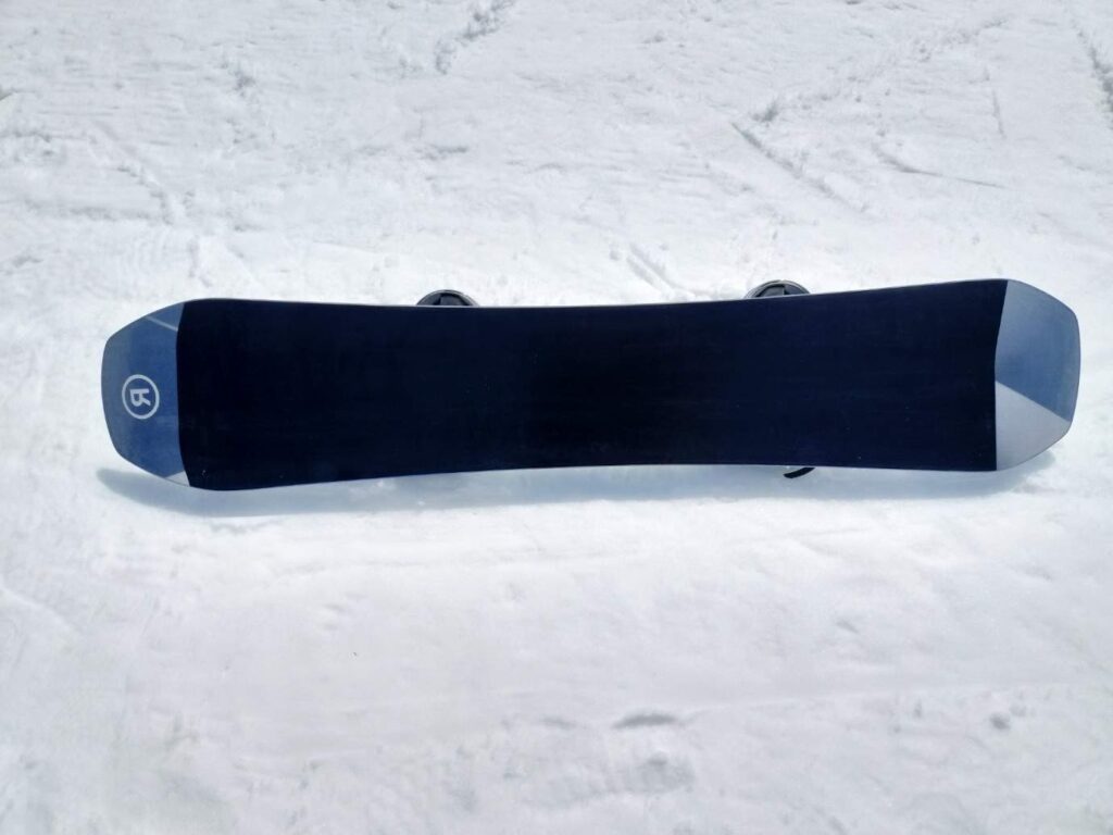 MODERATORの感触は、ノーズの端からテールの端までが雪面をカッチリ捉えている安定感と24.6cmという切り返しやすい絶妙なウエスト幅の軽快さで扱いやすい印象。