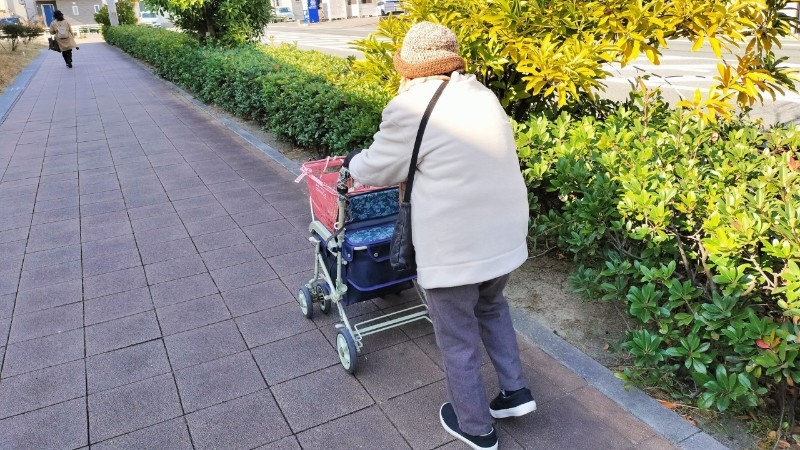愛車のシルバーカーでおばあちゃんは颯爽と買い物に出かけました。