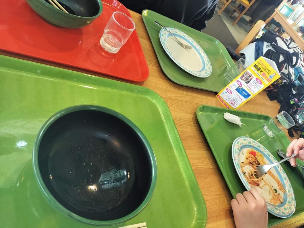 そこでわが家は「10時」という超早めのタイミングで休憩へ。おかげで、食後のトレイが並ぶ頃には、周囲はまだ混雑前でした。