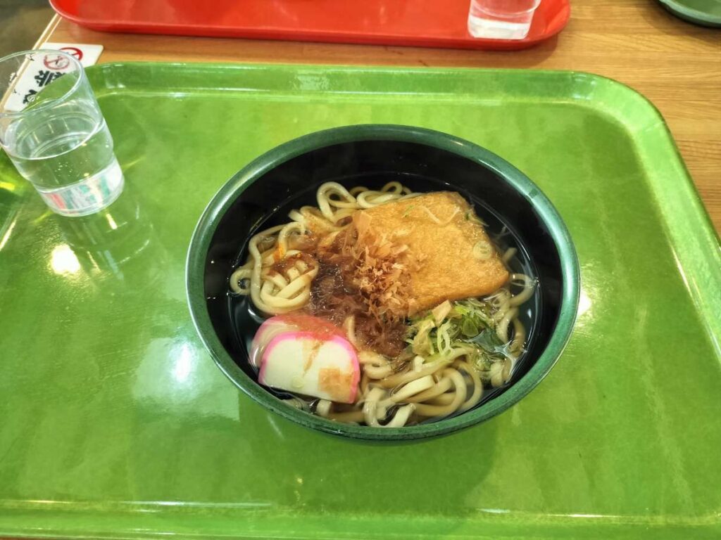 ▲ゲレンデで食べるきつねうどん。シンプルですが、冷えた体に染み渡る美味しさです。