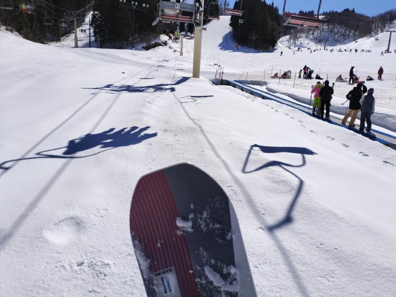 その後はカービングしたり、スイッチランしたりとSMOOTHのキレと操作性を感じながらゲレンデを滑り降りていくのでした。