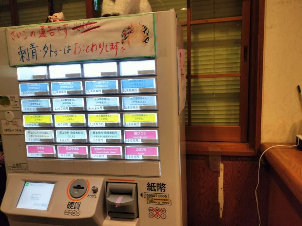 湯の平温泉の支払方法は券売機!現金を用意してスムーズに入館